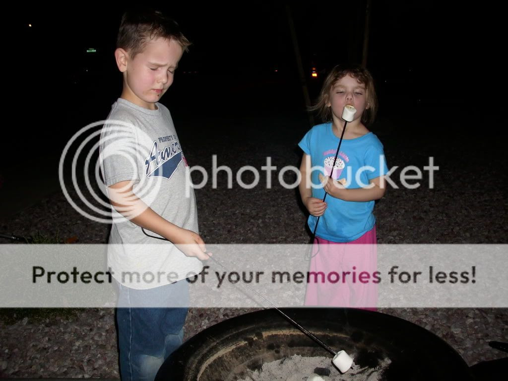 ) on Saturday. Then Saturday night we had a cook out on our fire pit. We roasted hot dogs and marshmallows. The kids loved this. Sunday was busy with church things and then we were all so glad to still have Jay home on Monday even though he had to spend most of the day working on a school paper. Papa and Grandma came over for lunch and visited for awhile and then we just had a quiet relaxing evening.