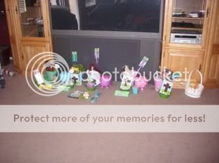The bigger kids each got a piggy bank, bubbles, sidewalk chalk candy of course and a webkinz (sidenote: we scored right after Christmas and stumbled across the webkinz at walgreens and they were on sale for $5.00!!) Natasha got a Dora The Explorer movie. She loves Dora and it is sooo cute to hear her sing the Dora song! Jadon just got some biter biscuits which he will be ready for soon.