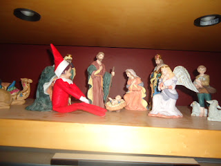 The kids were eager with anticipation this year expecting the arrival of Freddy (our elf) once again. We put up our tree on Thanksgiving night and sure enough the next day a package arrived from the North Pole. The kids could hardly stand that they were not allowed to open the box and it just had to sit under our tree. LOL When the woke up the next morning and came down stairs Freddy was sitting in our tree ( pictured above).As you can see from all the pictures below, Freddy was quite the mischievous prankster this year. We also had to set a new rule that if you were the first one up and found Freddy you were not allowed to tell anyone else where he was, so that everyone got a chance to find him. Jadon even caught on and would be excited to find Freddy each morning.